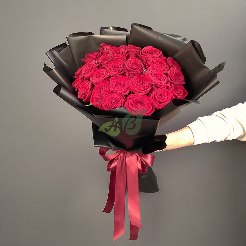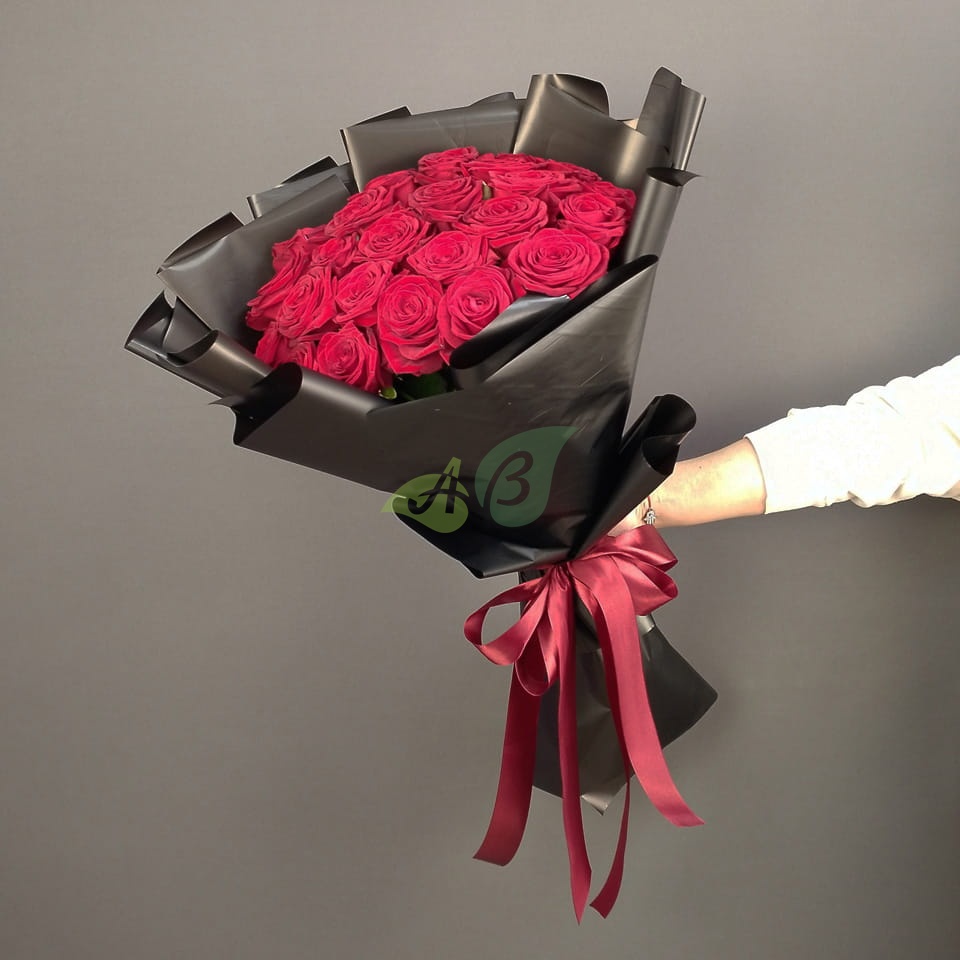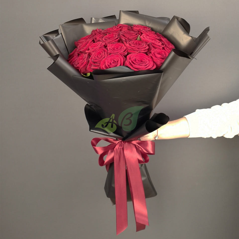 Красные розы в букете издавна считались символом любви. Роскошная чёрная упаковка подчёркивает изысканность и великолепие каждой розы. Ни одно сердце не сможет устоять против такого шикарного букета из роз!